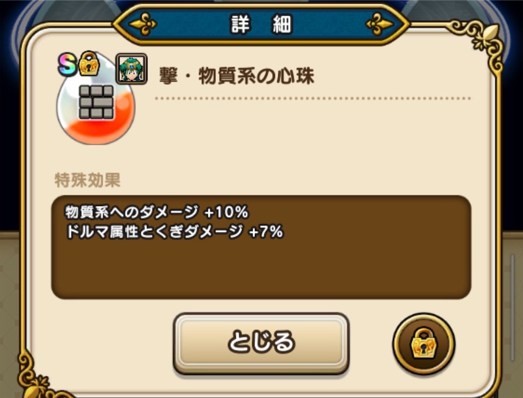 今週も楽しくドラクエウォーク ドラクエウォーク Twitter Facebook はてブ Pocket LINE コピー 2020.02.02 ドラクエウォーク! 楽しいぜ! 毎日コツコツやれてます! プリーストナイトの心はSが2つ ずしおうまるはSが1つ ちょっとお金に余裕が出たので心珠を生成 Sの癒し呪文技が出ました! ラッキー! 心珠のSはこれで3つ目! ドルマ特技が刺さってるのでバトマスにつけてます また来週も楽しく遊ぶぞー!